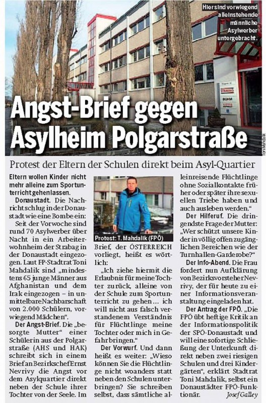 Gegen das Asylheim in der Polgarstraße 34, 1220 Wien