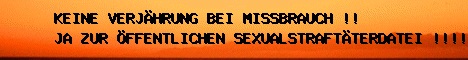 Unfassbare Zustände in den verschiedensten Heimen und Kirchen in Österreich, in denen Kindern sexuell missbraucht wurden haben mich veranlasst, wie so viele andere auch, KEINE VERJÄHRUNG BEI MISSBRAUCH ZU FORDERN , denn KEINE  ÖFFENTLICHE SEXUALSTRAFTÄTERDATEI und VERJÄHRUNG kommt einzig und alleine den TÄTER zugute und das werde ich nicht akzeptieren!!