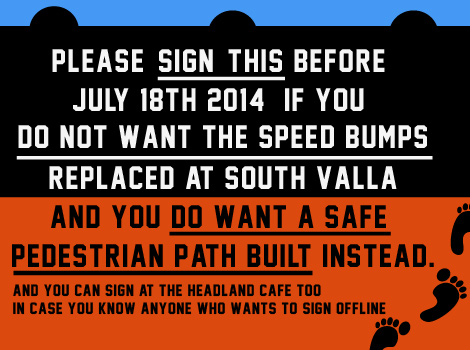 The speed bumps on the road to South Valla Beach are highly inappropriate and a waste of rate payers money.