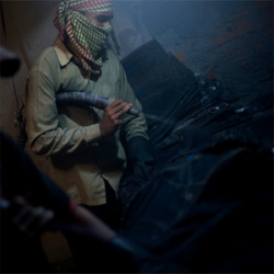 Then the cotton is taken to factories and sweatshops to be made into these jeans. In many factories and sweatshops a process called sandblasting occurs. In order to obtain the faded or worn look on certain denim jeans the laborers have to blow the jeans with abrasive substances powered by "high powered jet". This process is known world-wide to cause silicosis which leads to lung fibrosis and emphysema, both long term lung diseases that inflicts the victim with shortness of breath and eventually suffer partial lung collapse.