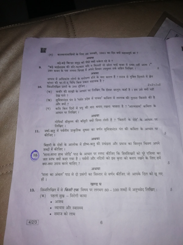 Unexpected question in 10th hindi exam