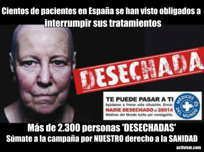 Desde que entró en vigor la reforma del sistema sanitario en septiembre de 2012 más de 2.300 personas han sido 'DESECHADAS' cada día. 873.000 TARJETAS SANITARIAS han sido retiradas.