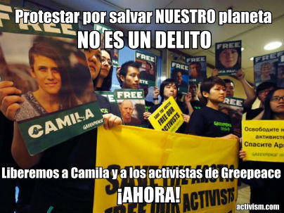 Desde el 19 de septiembre se encuentran detenidos ILEGALMENTE Y SIN MOTIVO por las autoridades rusas. Acusados de piratería, los ecologistas se enfrentan a condenas que contemplan los 10-15 AÑOS DE CÁRCEL. Liberemos a los argentinos Camila y Hernán, y al resto de activistas de Greenpeace.