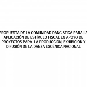PROPUESTA DE LA COMUNIDAD DANCÍSTICA PARA LA APLICACIÓN DE ESTÍMULO FISCAL EN APOYO DE PROYECTOS PARA LA PRODUCCIÓN, EXHIBICIÓN Y DIFUSIÓN DE LA DANZA ESCÉNICA NACIONAL