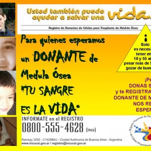 JUNTAMOS FIRMAS PARA SOLICITAR AL INCUCAI UNA CAMPAÑA NACIONAL DE INFOMACION Y CONCIENTIZACION SOBRE LA IMPORTANCIA DE LA DONACIÓN EN VIDA. El registro de Donantes Voluntarios de Medula es unico y totalmente distinto al de donacion de organos. LA DONACION DE CELULAS HEMATOPOYECTICAS SE REALIZA EN VIDA!!! Inscribirse como “Donante Voluntario de Medula” salva vidas; no lo dudes! Simplemente con donar una unidad de sangre en alguno de los centros hospitalarios designado por el INCUCAI en el país. La muestra de sangre se analiza genéticamente y se integra los a un Registro de Donantes de Medula para ser convocado cuando alguien lo necesite. Para ello debe acercarse hasta alguno de los hospitales que realiza dicha inscripción (ej. Garrahan): Usted debe donar una muestra de sangre y expresar que desea inscribirse como donante de medula allí mismo completa los formularios de consentimiento. Posteriormente de la misma muestra extraen la sangre para realizar estudios de compatibilidad genética. Este tipo de donación se realiza en vida. No implica ningún riesgo para el donante. Solo es necesario tener entre 18 y 55 años además de estar clínicamente sano. Gracias x sumar tu granito de ayuda.