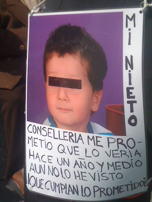 una mujer cría a su nieto desde que nace, en el 2010 la conselleria decide retirar su custodia ( CDN art. 18 / CLH preámbulo apartado 2 ) y para la sorpresa de muchos hace poco le negaron verle, retirándole el régimen de visitas ( CDE art. 20-3 / CLH preámbulo apartado 3 ) aun habiéndole prometido dejar verlo, van a dar en adopción a otra familia. que arias en su situación?