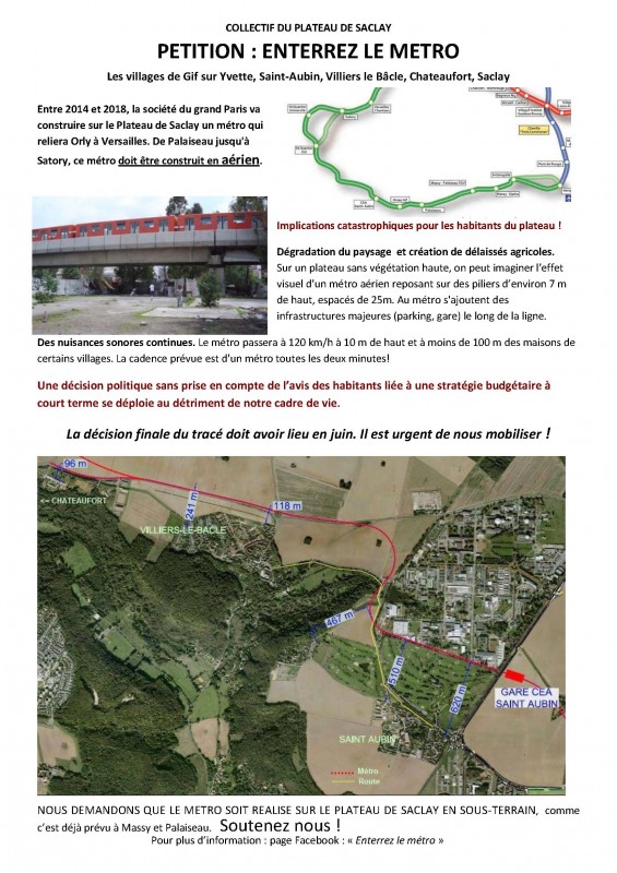 Nous demandons que le métro soit réalisé sur le Plateau de Saclay en sous-terrain.