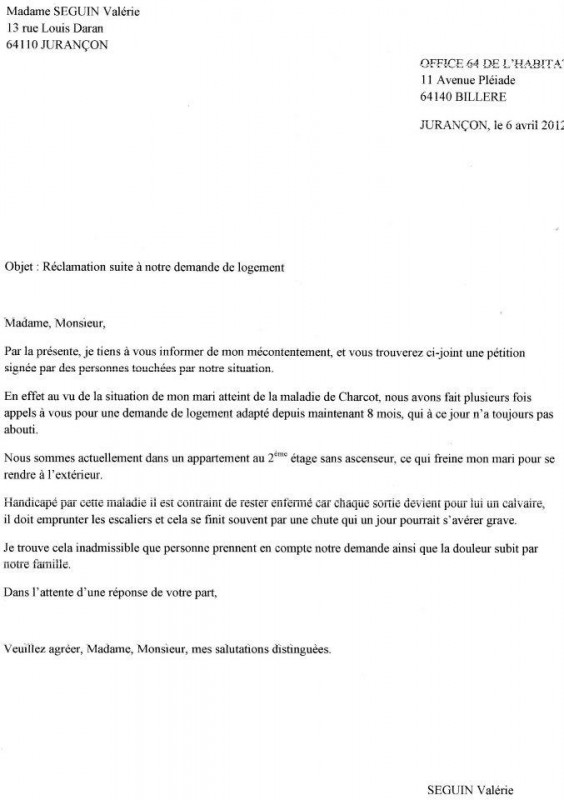 Ils ont déposé une demande de logement auprès de leur société HLM il y a 8 mois pour avoir une maison ou un rez de jardin mais aucunes nouvelles ou on leur dit rien pour le moment.