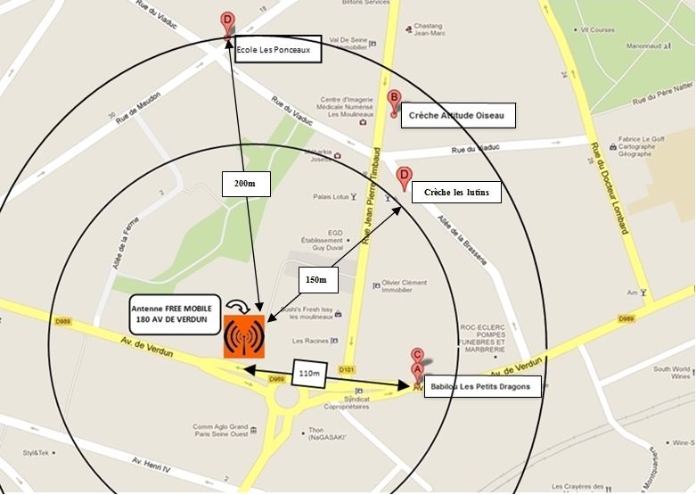 En qualité de parents et riverains de la place du 19 mars 1962, nous avons décidé de déposer un recours auprès du Maire d’Issy Les Moulineaux afin de nous opposer à l’installation de cette antenne.