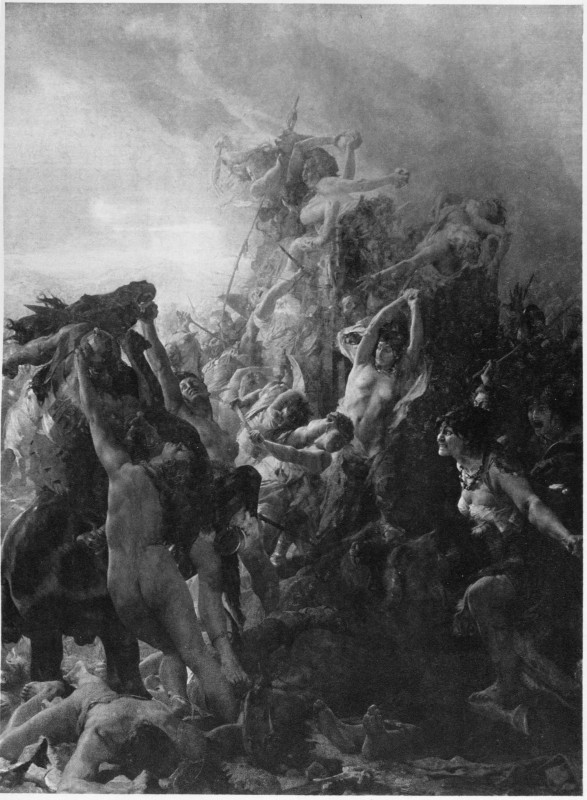 For many years, history painting or so-called "academic" painting was de-valued in France, leading to the banishing of exemplary paintings like these to storage facilities, when they were not sold off at low prices to private collectors, or even physically destroyed. Fortunately, for several decades now, things have been changing. Museum curators and organizers of exhibitions concerned with revalorization of France’s artistic heritage and with exploring the great themes of the history of art, have thoroughly understood the museum-going public’s interest in these technically superb paintings. Works like ”Les Ambronnes” possess additional art-historical interest in that they are emblematic of Salon painting, which was one of the currents in art that engendered the opposition of the "avant-gardes" of modernism. The Musée des beaux-arts in Rouen offers a large room where large-scale academic paintings like Luminais’ "Les énervés de Jumiège" or Rochegrosse’s "Andromaque" are exhibited. They are still inspiring paintings that anticipate the cinema of the twentieth century, fuelled both by a powerful imagination and technical brilliance.