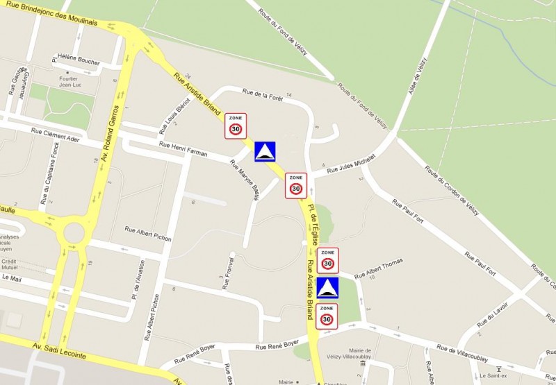 - en mettant en place la limitation de la vitesse à 30 km/h sur la section comprise entre les carrefours de la rue de Villacoublay et celui de la rue Roland Garros ;