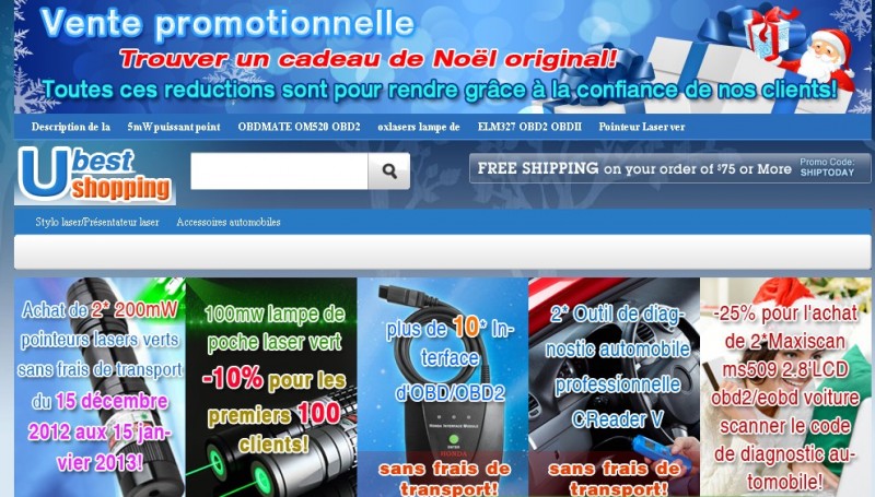 En solde!Vente pour produits électroniques de bonne qualité aux prix chocs, nous vous fournissons des pointeurs lasers de divers puissances et des OBD/OBD2 aux toutes marques automobiles.