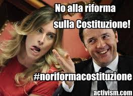 Matteo Renzi vuole cambiare in peggio la Costituzione e, se non passa la riforma al prossimo referendum di ottobre, dovrà trarre le conseguenze del suo fallimento politico. I cambiamenti riguardano diversi punti: si riducono il numero dei Senatori e i poteri di Palazzo Madama, viene abolito il Cnel, nascono i referendum popolari propositivi e di indirizzo, scende il quorum per l'elezione del Capo dello Stato.