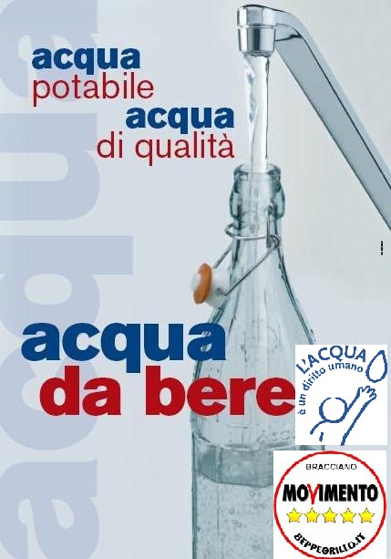 L'acqua di Bracciano non è più potabile per presenza arsenico. I Concittadini Braccianesi per la dearsenificazione dell’acqua della rete idrica comunale, organizza una raccolta firme al fine di garantire la salvaguardia dei Cittadini residenti e il rispetto delle norme riguardanti la tutela della pubblica salute.