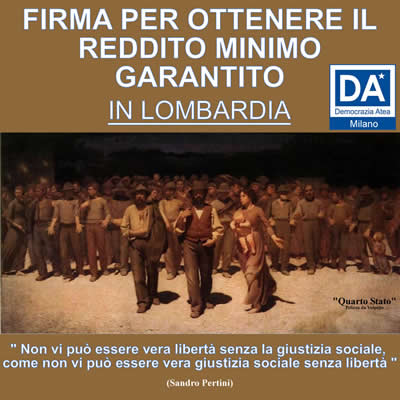 Chiediamo alla Regione Lombardia, che ne ha competenza e spettanza, di attivarsi come è già accaduto per la Provincia autonoma di Bolzano e per quella di Trento, la Regione Valle d’Aosta, Campania, Basilicata, Friuli Venezia Giulia, Puglia, Lazio, per rendere il reddito minimo garantito una realtà anche nella nostra regione.