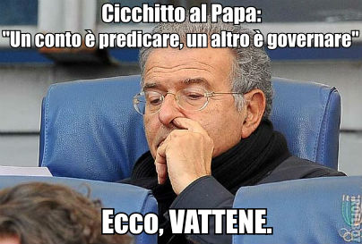 Dopo le poco felici dichiarazioni di Cicchitto nei confronti di Papa Francesco, chiediamo che il capogruppo del Pdl alla Camera dei Deputati se ne vada dal Parlamento.