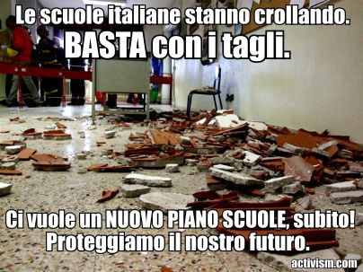 Basta tagli alle scuole italiane, cadono a pezzi. C'è bisogno di un NUOVO PIANO SCUOLE