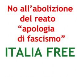 Al Presidente della Repubblica Italiana Al Presidente del Parlamento Europeo Ai Presidenti di Camera e Senato Ai Presidenti dei Gruppi Parlamentari La tragedia vissuta con il fascismo e il nazismo In Italia e in Europa negli anni fra 1925 e il 1945, l'olocausto degli ebrei uccisi e perseguitati, la persecuzioni contro tutte le persone non puo' essere assolutamente cancellata dalla proposta di alcuni parlamentari italiani che intendono chiedere la revisione e la trasformazione della XII disposizione transitoria della Costituzione Italiana e della legge 20 giugno 1952, n. 645 che all'art.4 sancisce il reato penale di apologia di fascismp per chiunque «fa propaganda per la costituzione di un'associazione, di un movimento o di un gruppo avente le caratteristiche e perseguente le finalità» di riorganizzazione del disciolto partito fascista, oppure da chiunque «pubblicamente esalta esponenti, princìpi, fatti o metodi del fascismo, oppure le sue finalità antidemocratiche». I sottoscritti cittadini, nel perseguire le finalità etiche della democrazia, del pluralismo, della non violenza e contro ogni forma di dittatura sia di destra sia di altra entità e profilo politico, chiedono che la sensibilità democratica della Presidenza della Repubblica, del Parlamento Europeo, delle rispettive Presidenze del Parlamento Italiano dei Capigruppo Parlamentari, stigmatizzi e aborri la sola proposta di cancellazione del reato penale "apologia di fascismo". In nome della Repubblica Italiana e dei Valori Democratici e in segno indelebile dei principi di Fratellanza, Libertà, Uguaglianza i firmatari presentano la seguente petizione alle autorità in indirizzo. Per un Mondo Libero e Democratico, Per un'Italia antifascista.