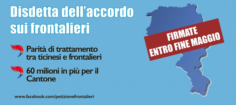 Petizione al Consiglio Federale per chiedere la disdetta dell’accordo sui frontalieri (in vigore dal 1974), per tutelare gli interessi del Ticino nelle trattative in corso con l’Italia.