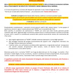 Ci appelliamo pertanto alle nostre Associazioni di Categoria, alle Camere di Commercio, e al Ministero dell’ Ambiente AFFINCHE’ VENGA SOSPESA IMMEDIATAMENTE L’ENTRATA IN VIGORE DEL SISTEMA “SISTRI” e affinché venga urgentemente istituito un gruppo di lavoro finalizzato allo studio di un sistema di tracciabilità dei rifiuti meno oneroso per le imprese e maggiormente efficace nei confronti dello smaltimento illegale dei rifiuti pericolosi.