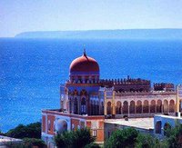 "Attiguo a casa sua stava un palazzo moresco, denunciato dal salmastro, orientale, come un riflesso sbiadito. Scrostato sotto le volte degli archi e sulle cupole. Abitato l'inverno da Cristiani comodi che nell'estate pagana cedevano le due ali sul mare per non morire di fame. Proclamato la fine lo stato d'assedio, quel palazzo sarebbe diventato il quartier generale dei Turchi che di tra le viole del cielo assolato avevano ammainato le mezzelune."