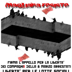Giovedi 19 novembre la Magistratura romana ha mostrato ancora una volta il suo vile volto reazionario e intimidatorio: ha negato i permessi lavorativi a Francesca, occupante della 8 Marzo di Magliana. Dopo 17 giorni passati in tre carceri diversi (Rebibbia, Civitavecchia e Perugia) e dopo quasi due mesi di arresti domiciliari, il GIP Cecilia Demma ritiene di dover negare i permessi lavorativi a Francesca con motivazioni odiose, false e contraddittorie: Le viene negato il permesso lavorativo perchè, in base al quadro emerso dall'inchiesta, viene considerata "persona non idonea a lavorare con il pubblico", in particolare con le "cosidette fasce deboli". La GIP, inoltre, motiva il respingimento affermando che si tratta di una “misura concessa in casi particolari”, mentre questa stessa misura è stata invece concessa solo qualche giorno fa ad un altro occupante la cui posizione nell'inchiesta è molto simile a quella di Francesca. Infine la sentenza afferma che il luogo di lavoro di Francesca è "difficilmente controllabile", quando in realtà si tratta di una casa famiglia con indirizzo noto alla magistratura e alle forze dell'ordine Appare chiaro come i Giudici utilizzino la discrezionalità delle misure cautelari con intenti punitivi, come arma rispondente a precise indicazioni politiche. Insieme a questa negazione della libertà per Francesca la Gip Demma e la Pm Lionetti continuano a negare la riduzione delle misure cautelari anche per Simone che dal 14 settembre scorso si trova agli arresti domiciliari con il divieto di vedere persone che non siano i suoi familiari diretti e con l'impossibilità perfino di poter usare telefono e internet. A queste pesanti restrinzioni solo ultimamente è stata fatta una deroga: la possibilità di uscire due ore solo ed esclusivamente per mansioni di supporto alla anziana nonna con cui Simone vive, senza poter parlare con nessuno. A causa di queste restrinzioni alla libertà personale Simone ha perso il lavoro precario che aveva. È ora di dire le cose come stanno: Francesca è una operatrice sociale di una cooperativa che da anni si impegna per migliorare le pessime condizioni di vita di chi è recluso/a e di cui le recenti cronache ci hanno dato una triste conferma. Simone è un lavoratore precario costretto a cambiare lavoro ogni mese e ad affrontare lunghi periodi di disoccupazione. Francesca e Simone sono occupanti della "8 marzo", una ex scuola di proprietà comunale, abbandonata per oltre 20 anni al peggiore degrado. Francesca e Simone, insieme ad altre decine di persone senza casa, hanno occupato quella scuola, l'hanno ristrutturata con i soldi del proprio stipendio e con le iniziative sociali di sottoscrizione popolare fatte alla luce del sole. Francesca e Simone hanno poi aperto al quartiere quella Casa Occupata, trasformandola anche in uno spazio di organizzazione contro l’emergenza abitativa nel territorio, contro il razzismo, con degli spazi sociali come la palestra popolare e il laboratorio teatrale. Francesca e Simone sono anche militanti del Centro sociale "Macchia Rossa" che da anni si batte nel quartiere contro gli sfratti e gli sgomberi, che ha organizzato una ciclofficina popolare e mille altre attività assenti in un quartiere abbandonato dalle istituzioni come è la Magliana. Francesca è una militante del movimento femminista che si è battuta con forza, insieme ad altre donne del quartiere, contro la chiusura del Consultorio della Magliana, e che conduce ogni giorno battaglie politiche culturali insieme alle donne del quartiere e della città contro il sessismo e il maschilismo imperanti. Francesca è una compagna che agisce con un approccio di genere partendo dal presupposto che la realtà è radicalmente sessuata e che donne e uomini la sperimentano in maniera diversa. Per questo il suo percorso politico dentro la 8 marzo e a Magliana è stato anche una continua e quotidiana lotta contro i rapporti di potere che sono alla radice delle disuguaglianze sociali fra i generi. Smascherando le forme più o meno latenti del machismo diffuso, Francesca ha così sempre lottato contro gli stereotipi vecchi e nuovi che esprimono e legittimano il patriarcato. Per contrappasso, il ritratto di Francesca tratteggiato dalle croniste del quotidiano Il Tempo sembra ricalcare i più frusti luoghi comuni della fiction televisiva e letteraria più becera, divenendo l’emblema della criminalità femminile: dietro l’apparente dolcezza, quest’efferata criminale capeggerebbe difatti con ferrea determinazione e lucido calcolo una banda di malfattori soggiogati. Attraverso di lei, vengono così stigmatizzati i percorsi individuali e collettivi di protagonismo politico di quelle donne che non intendono assumere il ruolo dell’abnegazione silente e della dedizione caritatevole, destinato alla soggettività femminile nella sfera dell’impegno sociale. Le decisioni maturate in sede giudiziaria lasciano pensare che la dottoressa Demma e la dottoressa Lionelli, come le giornaliste del quotidiano romano, siano fruitrici di questa letteratura passatista di cui evidentemente sposano i valori. Difatti come spiegare altrimenti la decisione di escludere solo lei da ogni permesso? Perché, a differenza degli altri imputati, non sono state allentate le restrizioni alla libertà di Francesca? Le accuse vergognose di associazione a delinquere e di estorsione che sono state rivolte contro di loro sono assolutamente false e servono solo a screditare la figura di militanti che da anni sono impegnati nelle lotte sociali in questa sempre più fascista città. Vogliono farli passare per estorsori, criminali comuni, per poterli confinare così in un angolo, togliendogli la dignità politica e sociale delle lotte che portano avanti nel massimo riconoscimento del contesto sociale in cui vivono. Forse è questa la nuova strategia delle istituzioni: visto che non riescono a reprimere le lotte sociali e a fermare i/le compagni/e li criminalizzano, per farli apparire ag