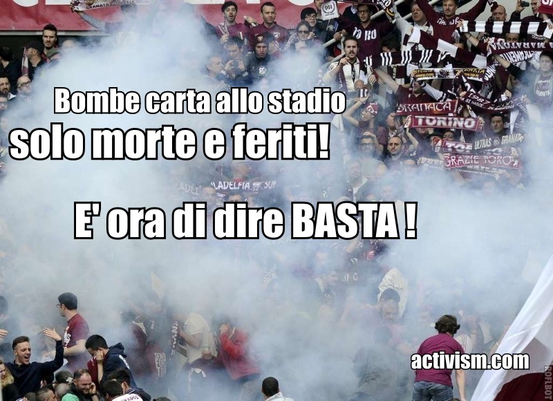 E' ora di dire basta a questo tipo di "coreografie" calcistiche che portano solo morte e feriti in un giorno di gioia per chi vuole recarsi allo stadio a tifare la propria squadra del cuore.