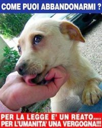 Chiediamo che il parlamento approvi una legge che punisca con il carcere fino a cinque anni tutti coloro che abbandonano gli animali domestici e fino a sei anni per coloro che abbandonano i cuccioli nel periodo compreso tra i mesi di giugno e settembre, inoltre chiediamo che la stessa legge preveda l'arresto immediato con l'accusa di tentato omicidio o omicidio colposo per i proprietari dei cani abbandonati sulle strade che loro malgrado (i cani) provocano incidenti stradali con feriti o morti.