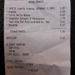Ci sono occasioni nelle quali, a costo di andare controcorrente ed essere impopolari, bisogna difendere anche i politici. Oggi ho visto questo scontrino, la cui foto circola da qualche ora su Facebook: è il conto di un pranzo alla mensa del Senato.