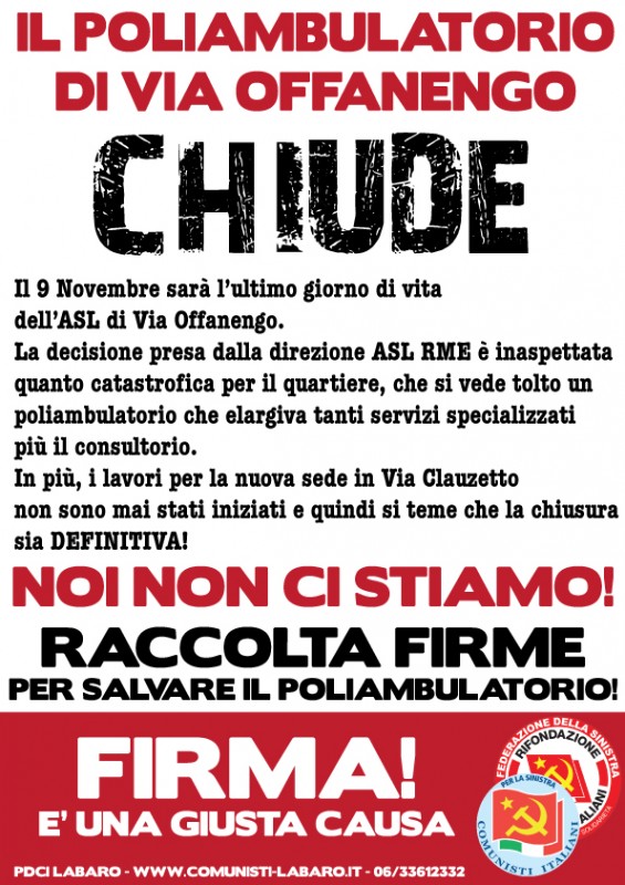 Per questo come comunisti ci sentiamo in dovere di non permettere la chiusura definitiva di questo poliambulatorio. Per questo abbiamo cominciato la raccolta firme per salvare il centro.
