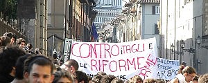 Il governo italiano (0,8% del PIL destinato alla ricerca), riduce invece i fondi per le nostre Università con tagli progressivi (17% nel 2011), smantellando la funzione e l’indipendenza della ricerca pubblica nel nostro paese. In conseguenza di ciò, gli Atenei hanno difficoltà crescenti nel garantire il regolare avvio dell’Anno Accademico e nel conservare i necessari livelli di competitività internazionale e di qualità formativa.