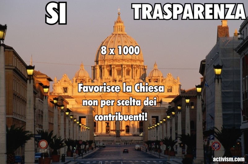 SI TRASPARENZA! Noi siamo con la Corte dei conti che accusa: “8x1000 poco trasparente e favorisce la Chiesa”