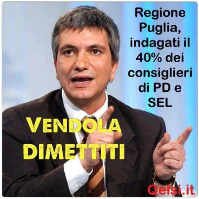 Vogliamo le dimissioni di Nichi Vendola da governatore della Puglia per i seguenti motivi: