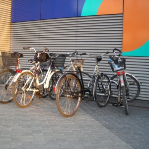 Niestety znajdujące się obecnie przed wejściem do Blue City stojaki nie pozwalają przypiąć roweru w bezpieczny sposób, czyli za ramę. W konsekwencji w łatwy sposób mogą stać się one łupem złodziei. Dodatkowo w przypadku silniejszego wiatru stojaki mogą uszkodzić rower, jego koło lub tylną przerzutkę.
